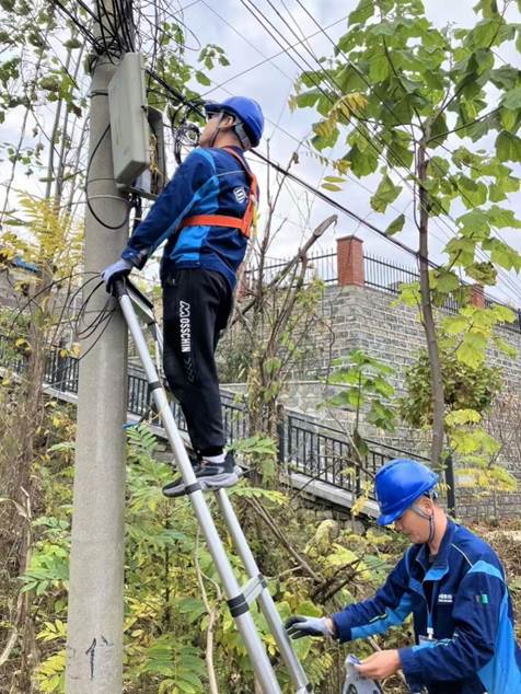 在淄川区黑山庄村,智慧家庭工程师们穿梭于村巷民居之间,逐户排查宽带线路隐患。他们或登梯检修屋顶线路,或蹲地调试光功率计,尽管天气寒冷,工程师们仍高效完成两户家庭宽带故障修复,并顺利为村民新装宽带,让“移动爱家,让家更有AI”的服务理念落到实处。