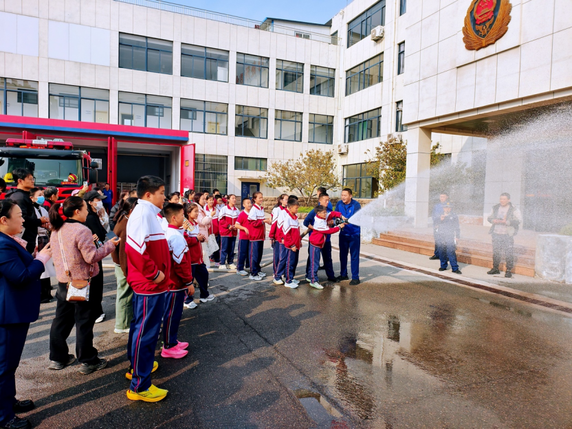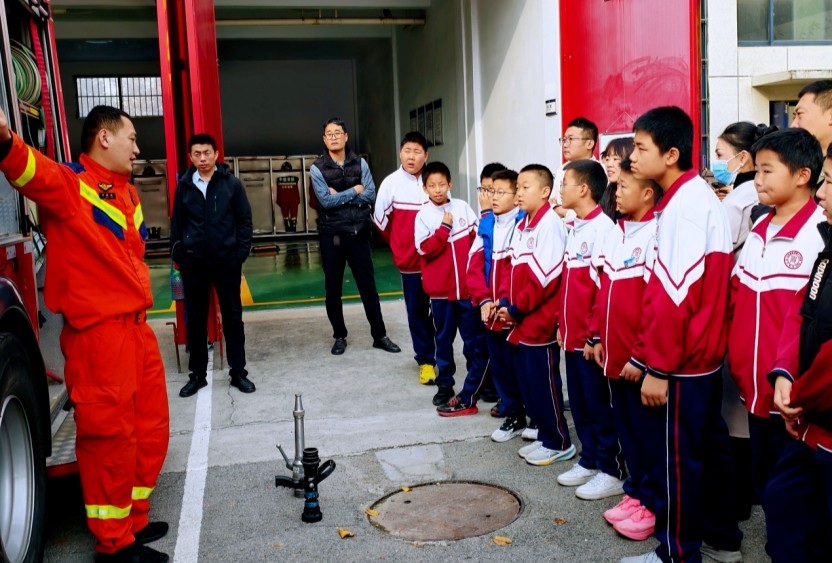 冒险从“变身”开始。在消防员的指导下,学生们亲手触摸并试穿了厚重的灭火防护服,戴上了帅气的消防头盔。当“全副武装”的“小小消防员”站在红色的消防车前,他们不仅收获了酷炫的照片,更切身感受到了消防员肩负的重量与责任,对接下来的挑战有了更深的理解。