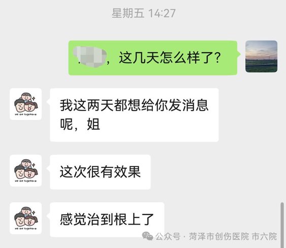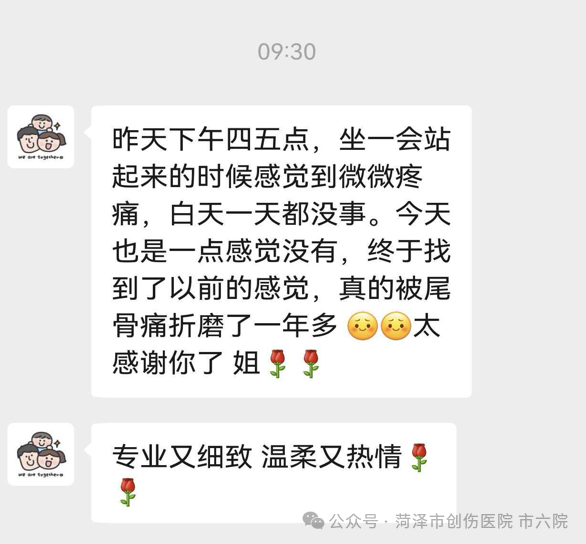 近日,在菏泽市创伤医院(市六院)产后康复科,刚结束第三次治疗的李女士(化名)脸上洋溢着轻松的笑容,她激动地向医护人员分享康复后的喜悦:“之前坐久了起身,尾骨周围像被针扎一样疼,连抱娃都不敢用力,现在终于能轻松坐下、自由活动了!”