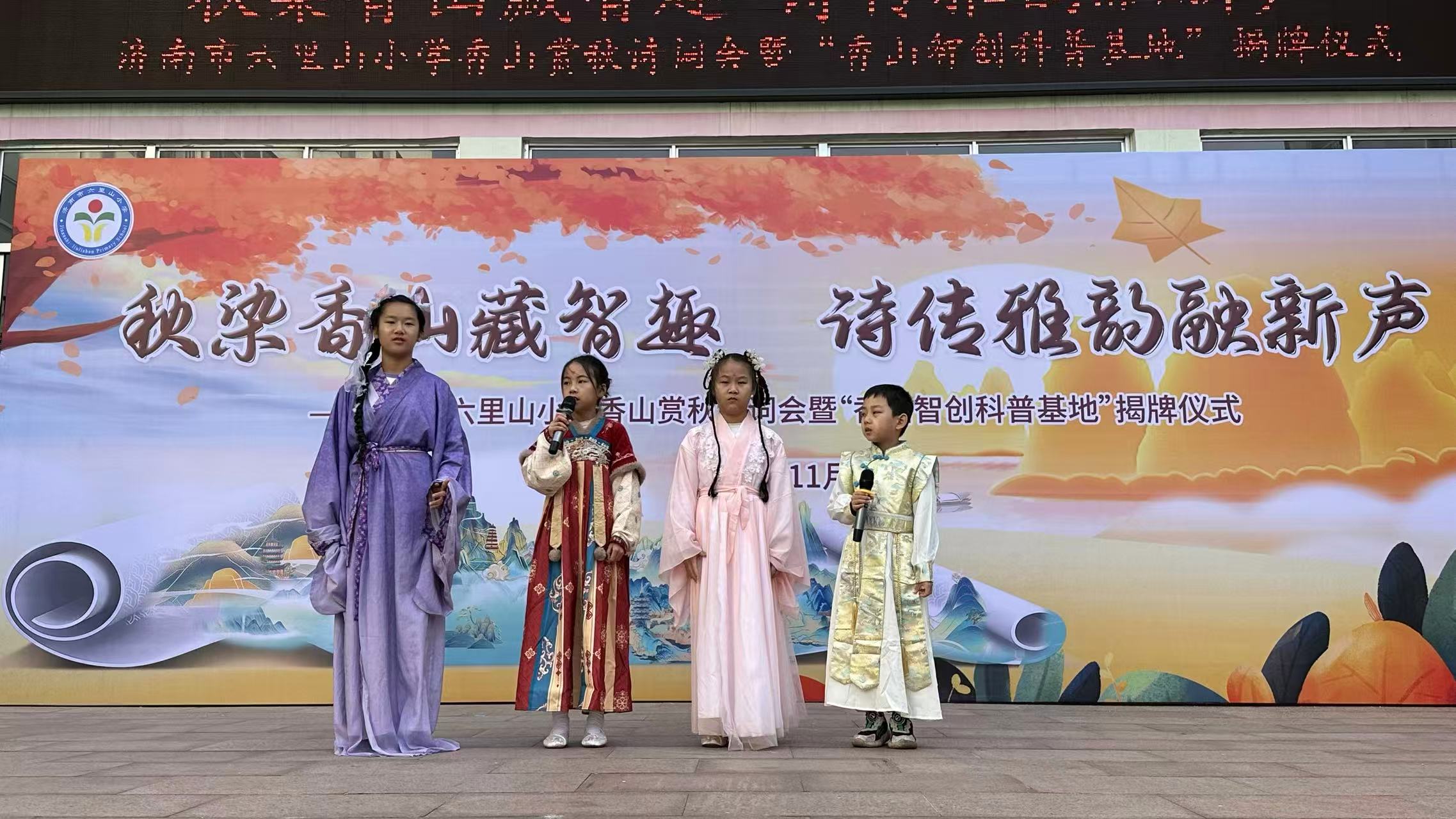 11月14日,济南市六里山小学以“秋染香山藏智趣,诗传雅韵融新声”为主题,成功举办香山赏秋诗词会暨“智创科普基地”揭牌仪式。活动创新性地将传统文化、科技创新与家校社协同育人深度融合,既是学校“香山课程”的延伸拓展,更是“香山韵六里情”教联体协同育人新生态的生动实践,为学生打造了一场集文化浸润、科技探索、多元体验于一体的成长盛宴。