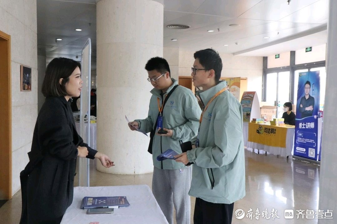 在企业交流区,可以看到人才培养与产业需求的无缝对接。中孚信息股份有限公司HR娄瑞杰表示,因为齐鲁软件园的邀请,他们有机会走进山大校园,与各高校同学面对面交流。他们向同学们介绍了企业相关信息,也跟同学们进行了职业发展方面的探讨,发现了很多优秀的潜力人才。