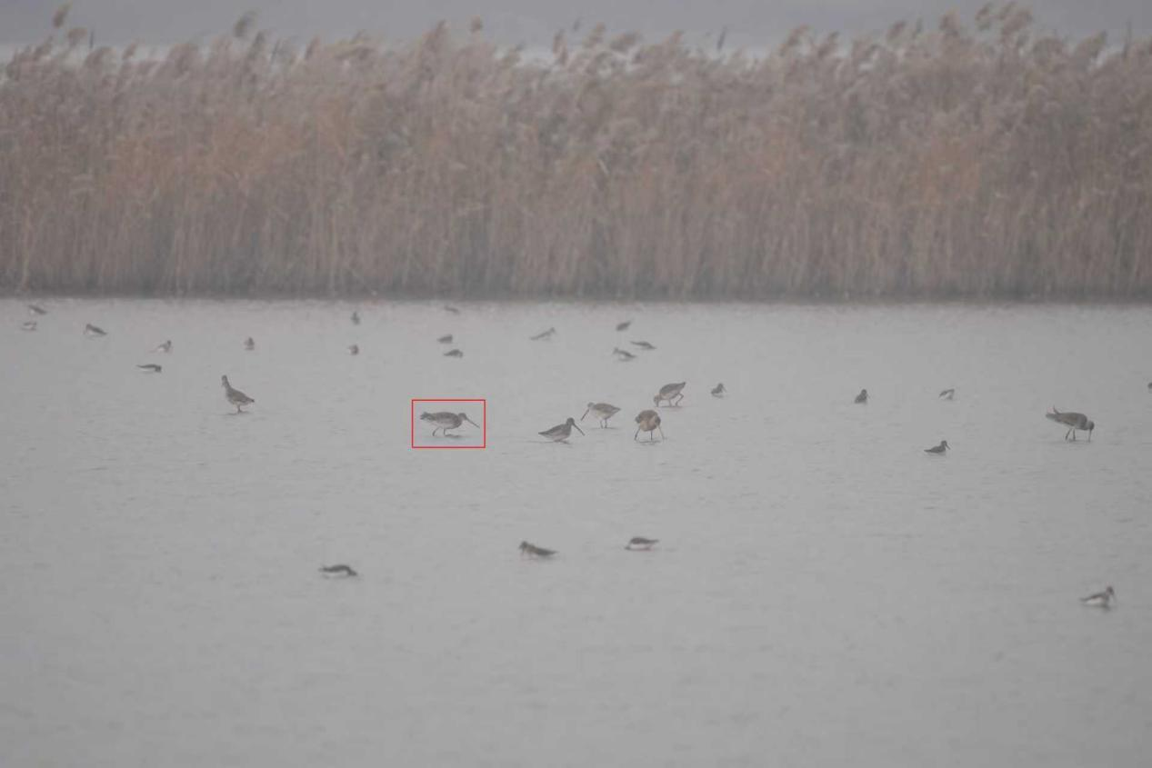 长嘴半蹼鹬与其他鸻鹬类水鸟共同进食,参赛队员提供