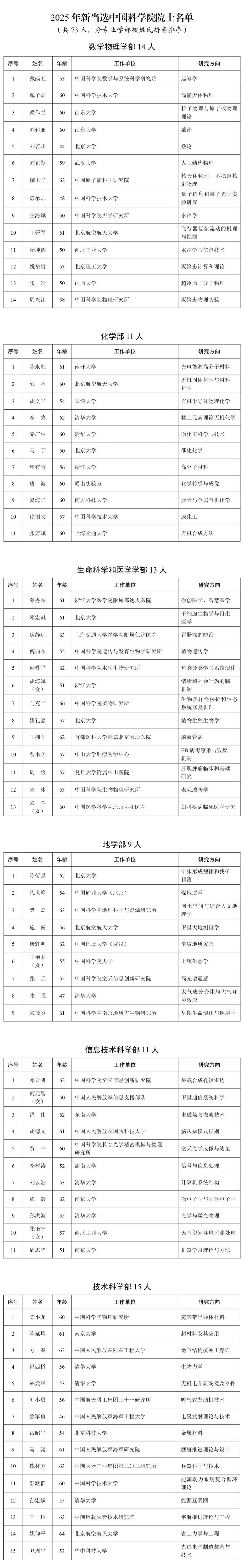 中国科学院、中国工程院11月21日公布2025年院士增选结果,分别选举产生中国科学院院士73人、中国工程院院士71人。其中,日照籍代世峰教授、梁作堂教授、申有青教授当选中国科学院院士。