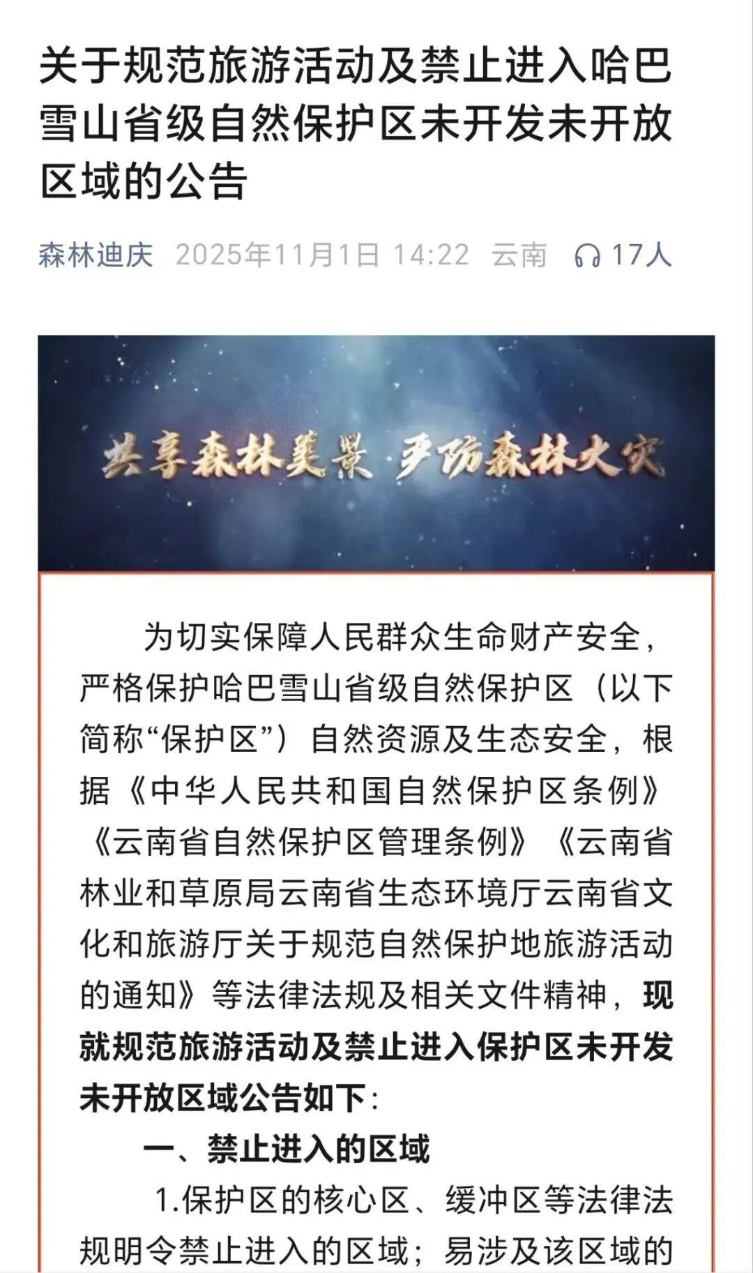 香格里拉市哈巴雪山生态旅游开发公司发文:自2025年10月21日起,暂停开展哈巴雪山登山、徒步等相关经营活动,具体恢复经营时间另行通知。