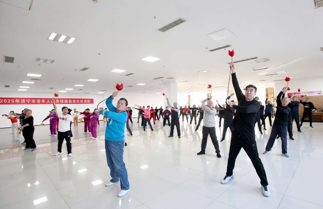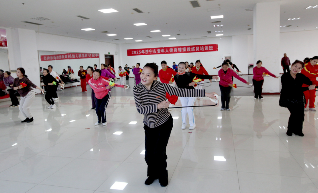 2026年,第五届全国老健会健身球操比赛将在济宁激情上演。为当好东道主,积极备战这场盛会,2025年12月8日至9日,由济宁市老年人体育协会、济宁市体育总会服务中心主办的2025年济宁市老年人健身球操教练员培训班在济宁市老年人体育活动中心四楼火热开展。来自各县市区、曲师大、济宁医学院的70余名健身球操骨干齐聚一堂,为提升自身技能、推动健身球操运动发展蓄力。