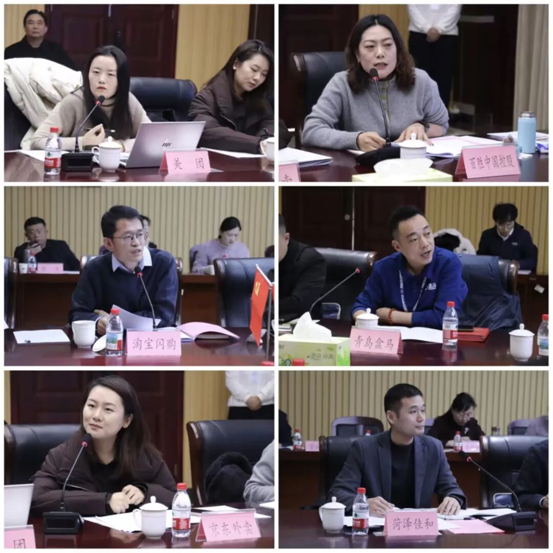 王丹副司长一行实地考察了菏泽佳和购物中心、菏泽市食品安全指挥调度中心等,并组织召开座谈会。座谈会上,菏泽市委常委、副市长王昌华同志致辞介绍菏泽市经济社会发展情况,市市场监管局党组书记、局长王敏汇报了菏泽市市场监管法治建设和食品安全工作,上海、河南、湖南、山东“四地”市场监管局相关负责人,食品相关协会负责人,淘宝闪购副总裁、法务总经理赵伟,美团法务食品安全负责人高蓓,京东外卖公共事务高级经理赵秀洁,百胜中国控股有限公司食品安全资深经理姚微霞,菏泽佳和购物广场有限公司总经理高利,青岛盒马网络科技有限公司菏泽分公司店长刘银辉,分别介绍了在菏泽的发展情况、企业营销模式和发展需求,并结合自身实践,就相关立法提出针对性建议。
