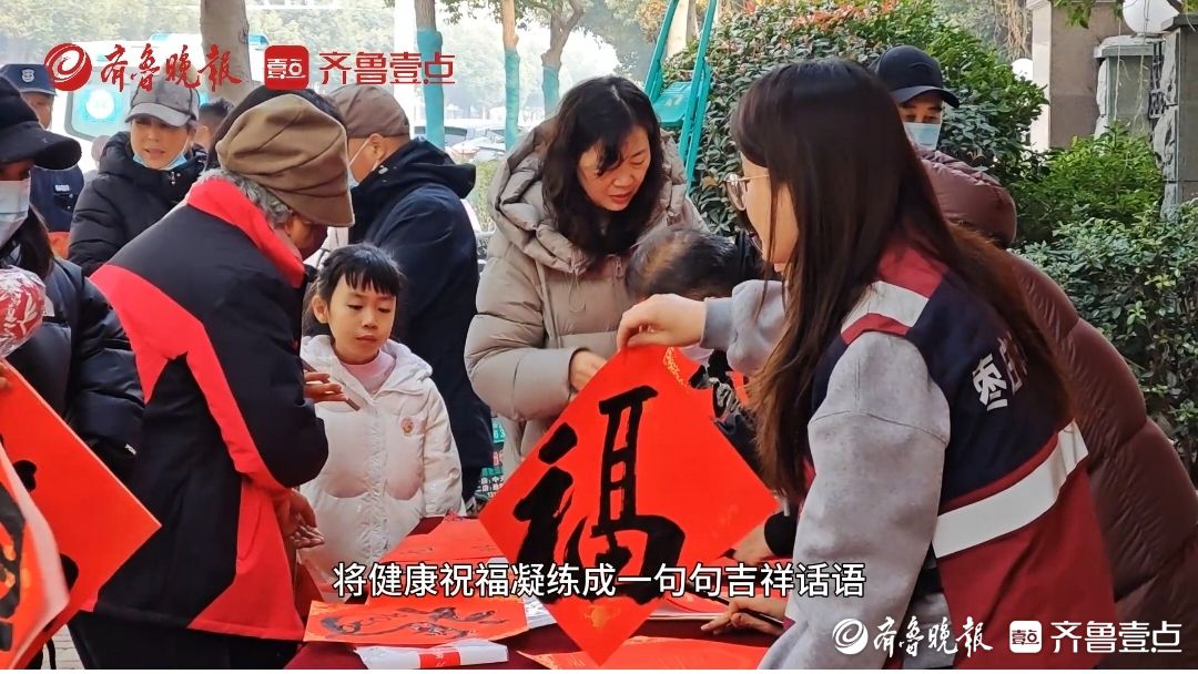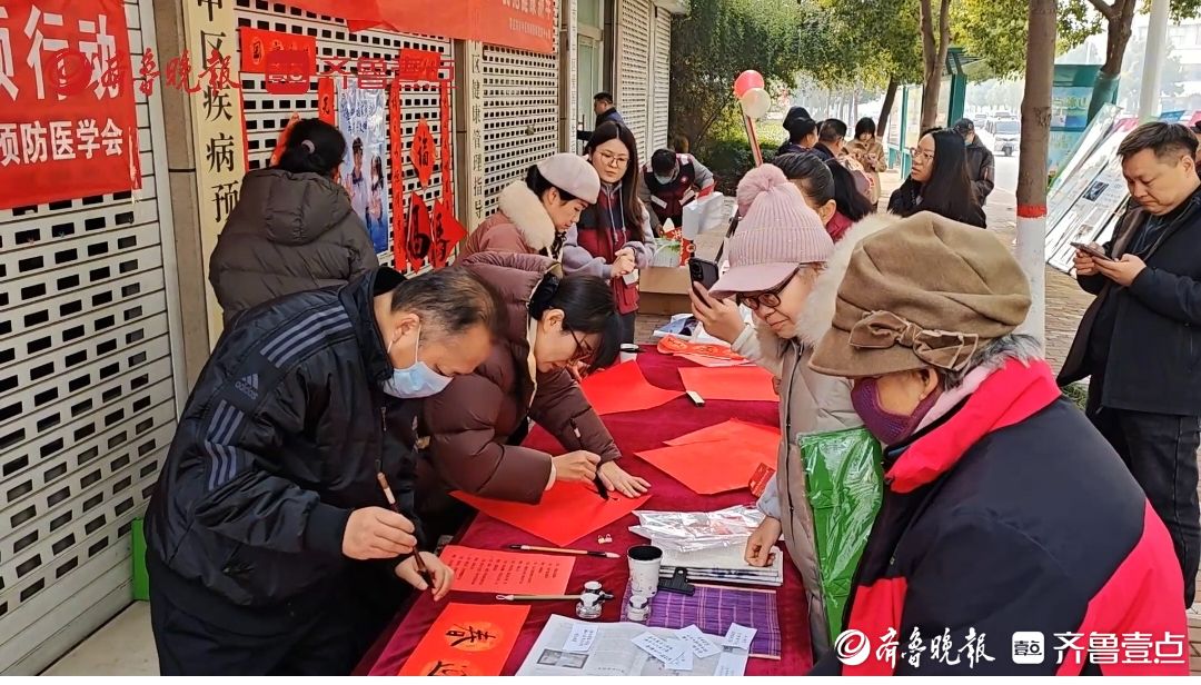 来自书法协会的专家和枣庄疾控中心的书法爱好者们,将健康祝福凝练成一句句吉祥话语。“无烟健康添福气”——这样的“健康对联”,成了现场最炙手可热的“年礼”。红纸用了一张又一张,工作人员笑称,这充满祝福的春联,真是“供不应求”。