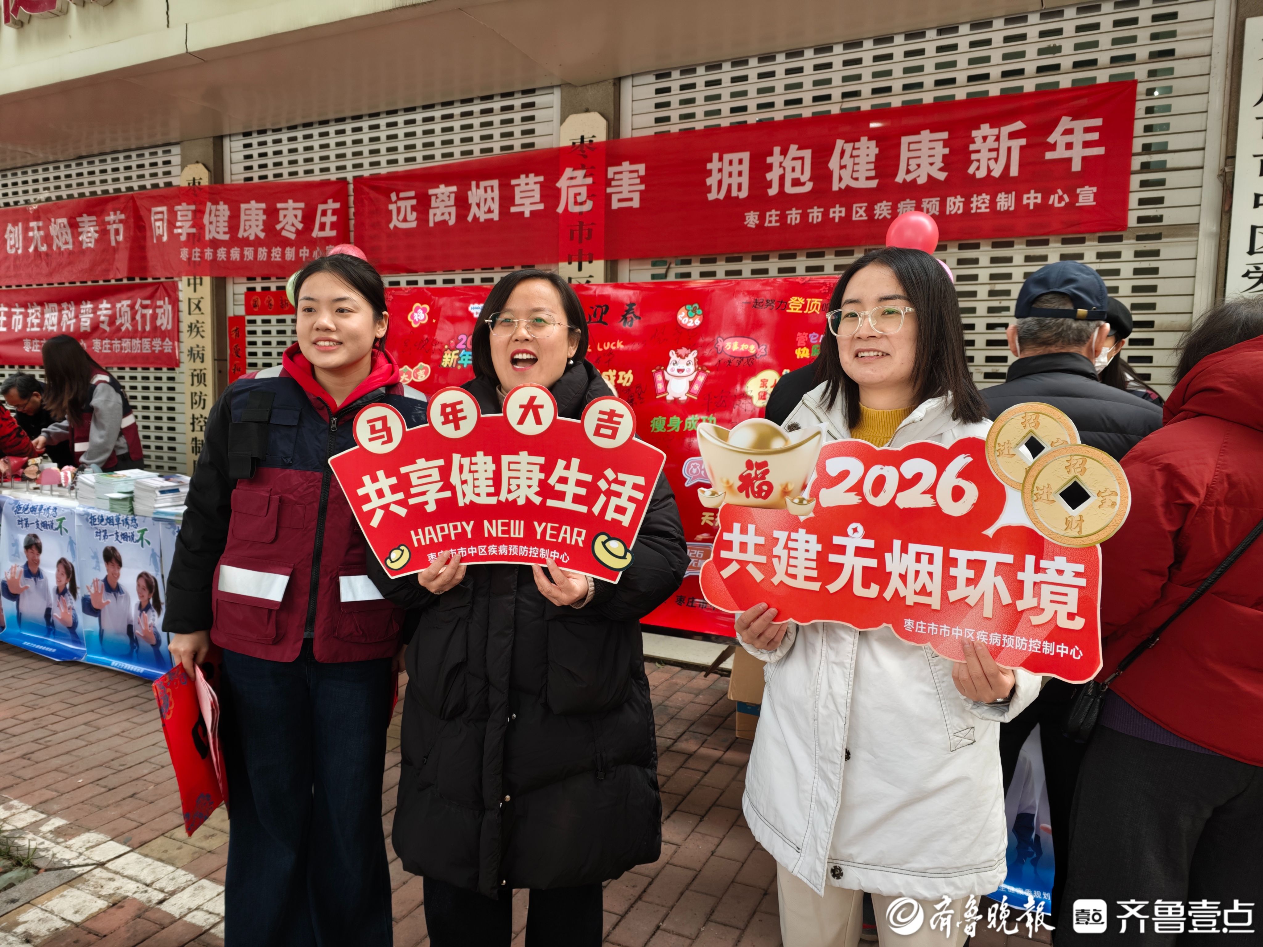 红纸、墨香、人群、笑脸,这不是传统的年货大集,而是一场特殊的“健康年集”。2月3日,在枣庄市市中区,一场“无烟春节”宣传活动,让健康倡议变得热气腾腾,充满温情。