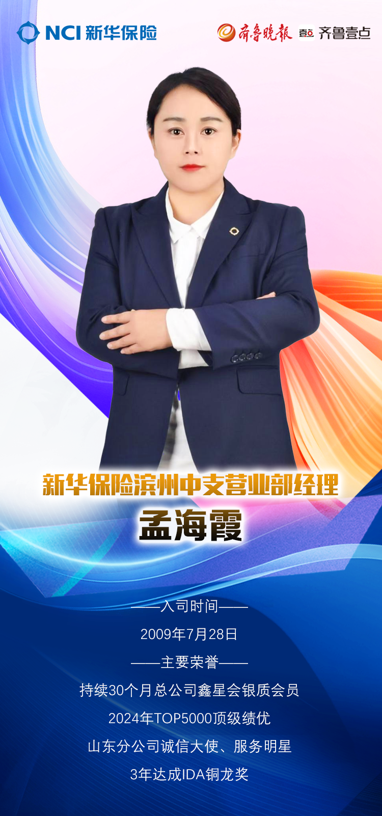 2009年7月,怀着对保险事业的憧憬,孟海霞推开了新华保险的大门,自此便以初心为锚,以专业为帆,在保险保障的赛道上深耕十七载。从初入行业的深耕细作,到成为公司的标杆型代理人,她手握总公司5星级讲师、3次国际龙奖IDA达成者、山东分公司诚信大使、总公司30个月持续绩优等多项荣誉,用专业、诚信与坚守,为万千家庭筑牢风险保障的防线,诠释着新华保险人的责任与担当。