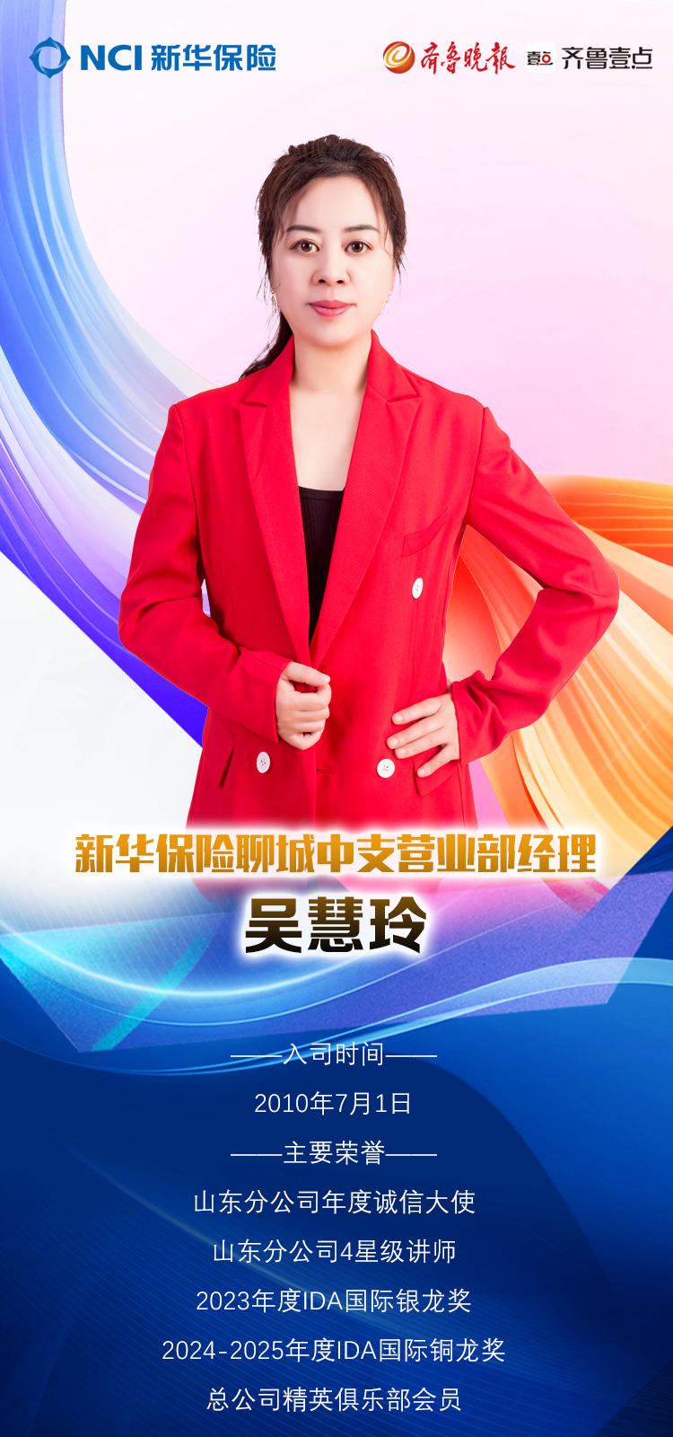在新华保险聊城中支茌平支公司,营业部经理吴慧玲以其扎实的专业知识与真挚的诚信精神,走出了一条卓越的道路。自2010年7月加入新华保险,她始终秉持初心,将教育者的细致与责任心融入保险服务,不仅赢得了“山东分公司年度诚信大使”“4星级讲师”等荣誉,还于2023年达成IDA国际银龙奖,2024-2025年连续斩获IDA国际铜龙奖,并长期稳居总公司精英俱乐部会员之列,成为聊城公司一面鲜明的旗帜。