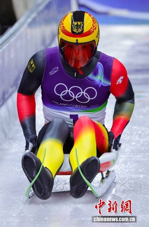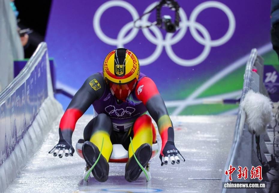当地时间2月8日晚,2026年米兰-科尔蒂纳冬奥会男子单人雪橇比赛在科尔蒂纳滑行中心收官。德国选手马克斯·朗根汉以四轮滑行总成绩3分31秒191,摘得金牌。图为获得金牌的德国选手马克斯·朗根汉在比赛中。中新社记者 骆云飞 摄