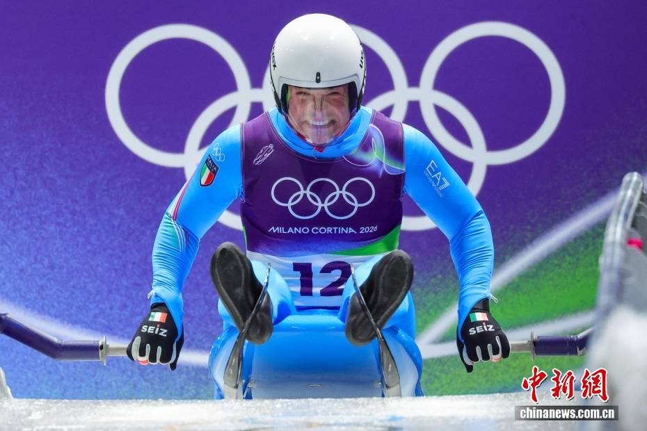 当地时间2月8日晚,2026年米兰-科尔蒂纳冬奥会男子单人雪橇比赛在科尔蒂纳滑行中心收官,德国选手马克斯·朗根汉摘得金牌。图为获得铜牌的意大利选手多米尼克·菲施纳勒在比赛中。中新社记者 骆云飞 摄