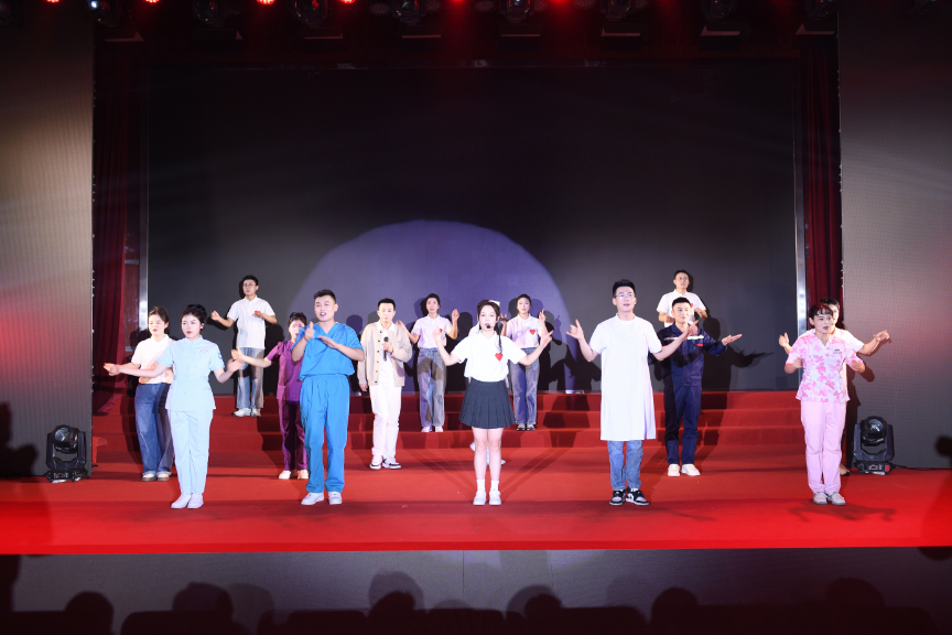整台晚会脉络清晰、亮点纷呈。“百年华章 医脉传承”“仁心筑梦 温暖同行”“策马逐光 启航未来”三个篇章的15个节目均由医院职工自编自导自演,涵盖舞蹈、歌曲、小品、朗诵、群口快板等多种艺术形式,兼顾观赏性与思想性,全方位、多角度诠释了医务工作者的责任与担当、温情与坚守,展现了百年一院的文化底蕴与职工风采。