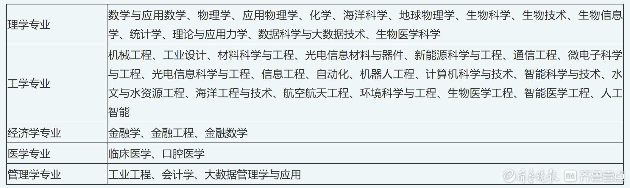招生专业方面,普通类按物理学大类录取,学生入学时不分专业,在大一、二年级根据自己的兴趣和能力做主选择专业。南科大伦敦国王学院医学院的生物医学科学、生物医学工程两个中外合作办学专业同步在山东招生,该类专业入学后不转专业,在第二学年开学前,雅思总成绩须达到6.5分及以上,且各单项不低于6分(或其他同等水平的英语考试成绩)。在规定年限内达到所学专业毕业(学位)要求者,可获南科大与英国伦敦国王学院双学位。学费标准为物理学大类6000元/学年,中外合作办学专业135000元/学年。