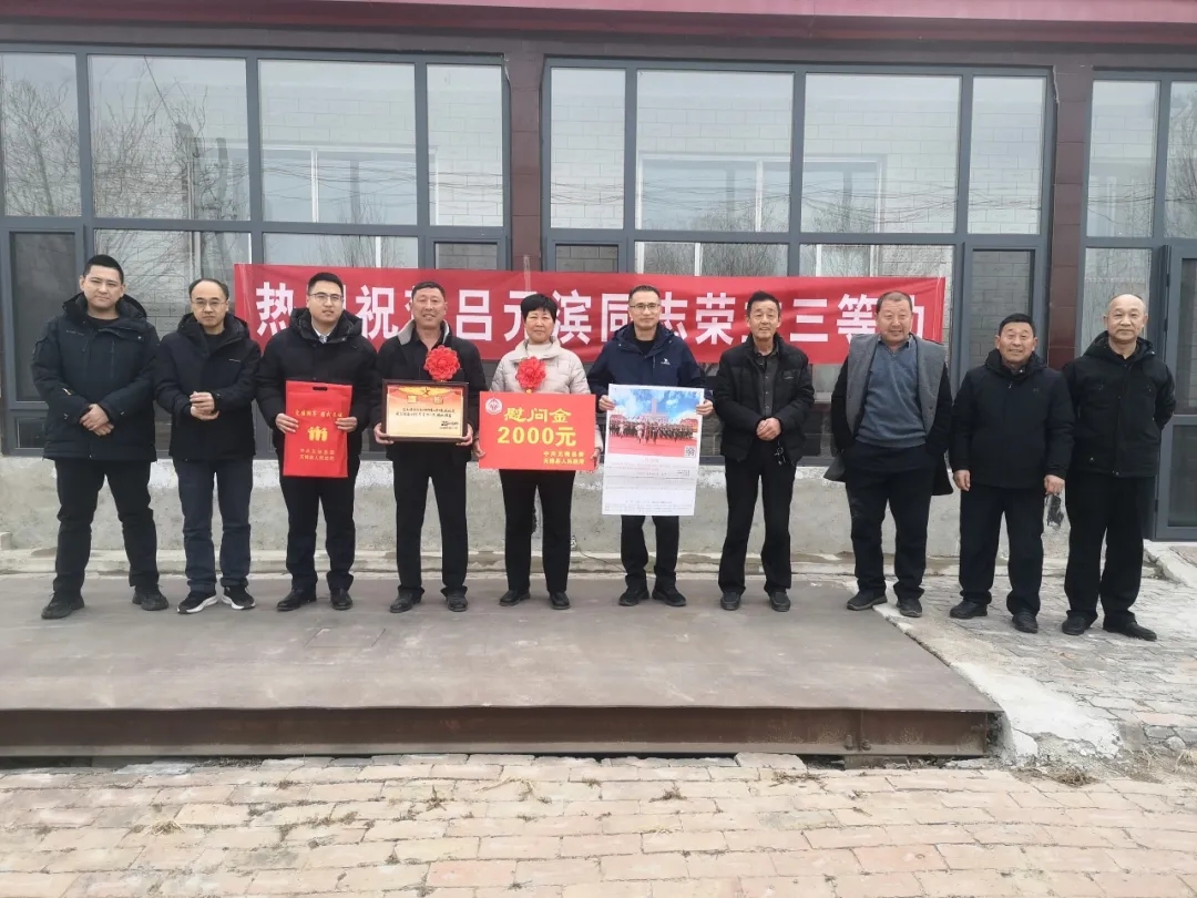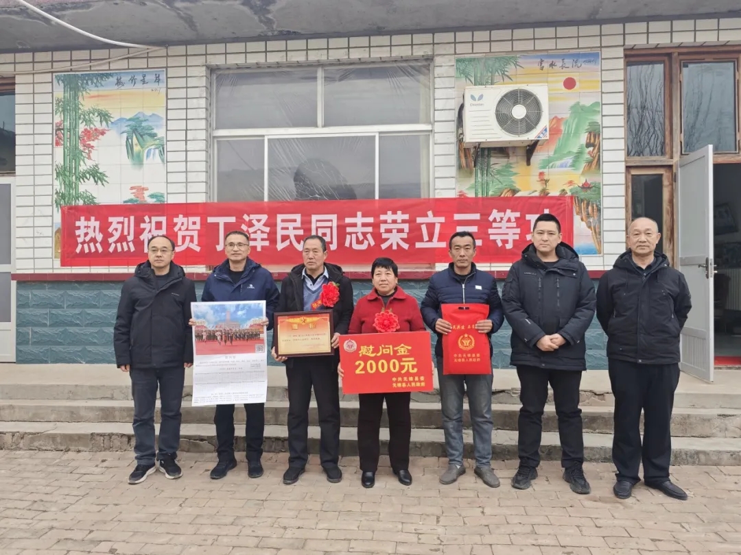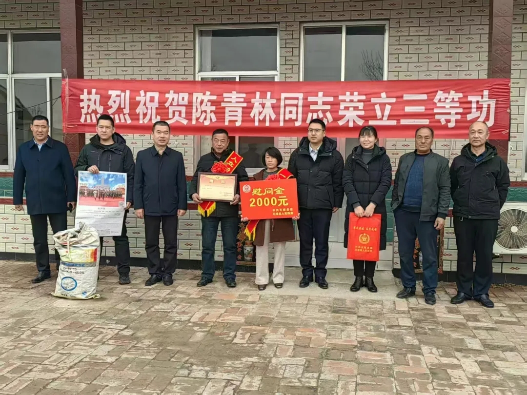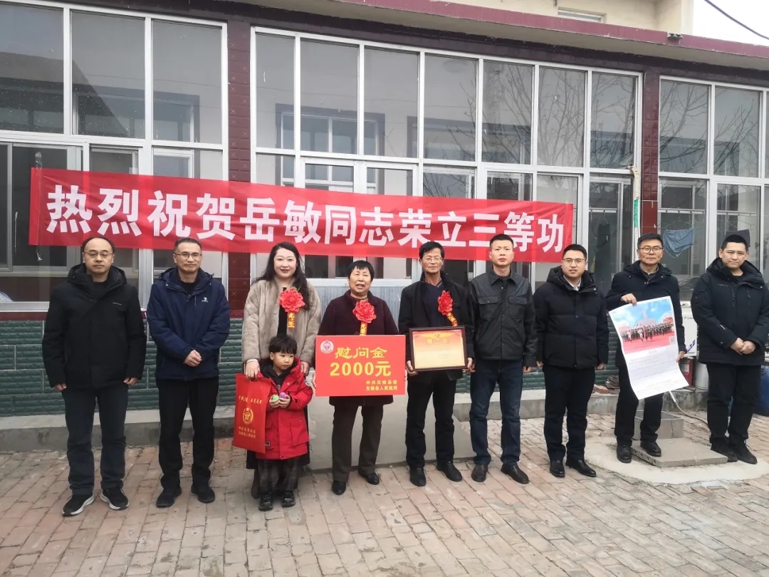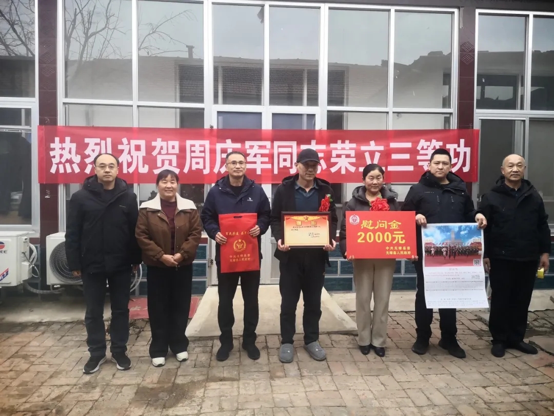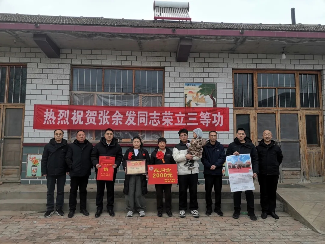 “一人参军,全家光荣;一人立功受奖,全家无上光荣”。为进一步激发部队服役军人安心服役、建功军营、报效祖国的热情,增强军人家属的荣誉感和自豪感,2月9日至10日,无棣县退役军人事务局党组书记、局长仝广庆带队,联合水湾镇工作人员一行,专程前往水湾镇,为2025年度荣立三等功的7名现役军人及“四有”优秀士兵家属送去诚挚祝贺,亲手为军属颁发立功喜报、送上慰问金,向家属们致以崇高敬意,衷心感谢他们多年来默默奉献、全力支持子女扎根军营、守护家国的无私付出。