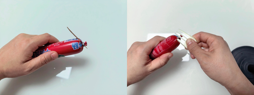 将火腿肠对折