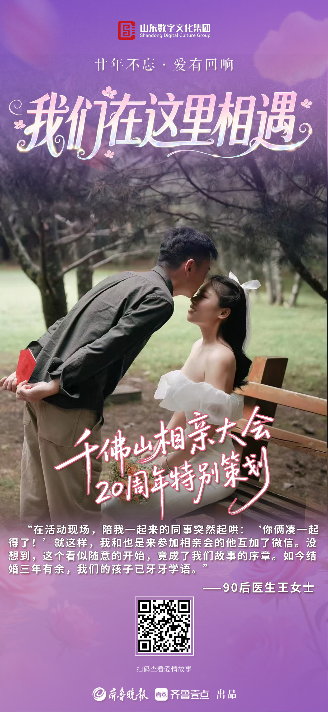 从2006到2026,二十年岁月如歌,二十年只为相遇。值此千佛山相亲大会二十周年之际,齐鲁晚报·齐鲁壹点推出“廿年不忘·爱有回响”千佛山相亲大会二十周年特别策划,向通过相亲会结缘另一半组建幸福美满家庭的无数个有缘人发出诚挚邀请,在二十周年这个特别的日子里,一起分享我们在这里相遇的故事,共忆动心时刻,共叙相守温情。