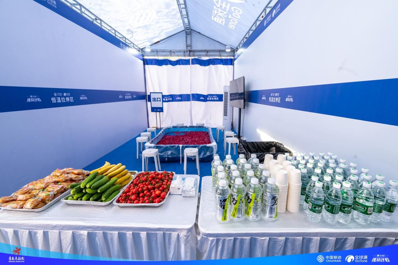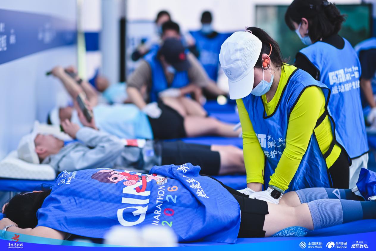 为帮助跑者快速缓解赛后疲劳,全球通在终点区域打造专属赛后服务区,以精细化服务为赛事体验圆满收尾。服务区内配备专业按摩床与资深拉伸教练,为跑者提供一对一肌肉放松与恢复指导;设置专属补给站,开放冰池服务,高效舒缓运动疲惫。从物资补给到专业恢复,从秩序引导到暖心陪伴,全球通以全流程、闭环式服务,让跑者在冲线之后依旧感受周到关怀,尽享赛事喜悦。